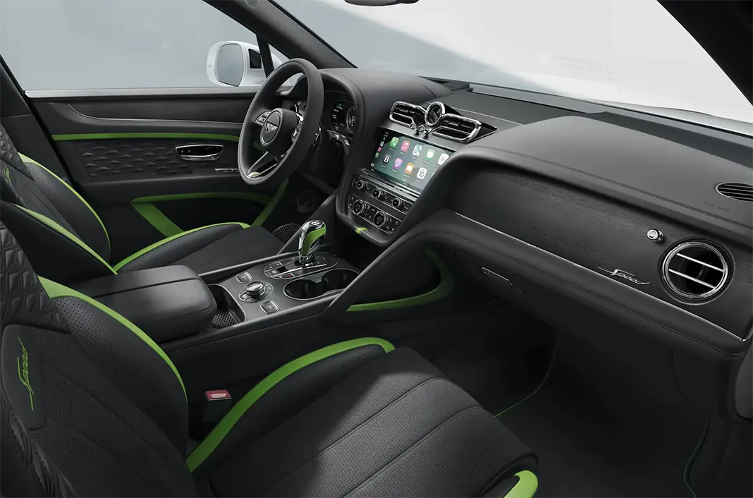 Є у Bentayga Speed повнокероване шасі. Як опції запропоновані титановий випуск Akrapovic, ексклюзивні колеса діаметром 23 дюйми та чорний дах у сатинованому або глянсовому виконанні. Гальмівні супорти можна замовити в одному з семи кольорів на вибір. Ну а візуально кросовер відрізняється затемненими фарами, ліхтарями та колірною схемою салону, де темніший вторинний відтінок шкіри домінує над яскравішим основним.