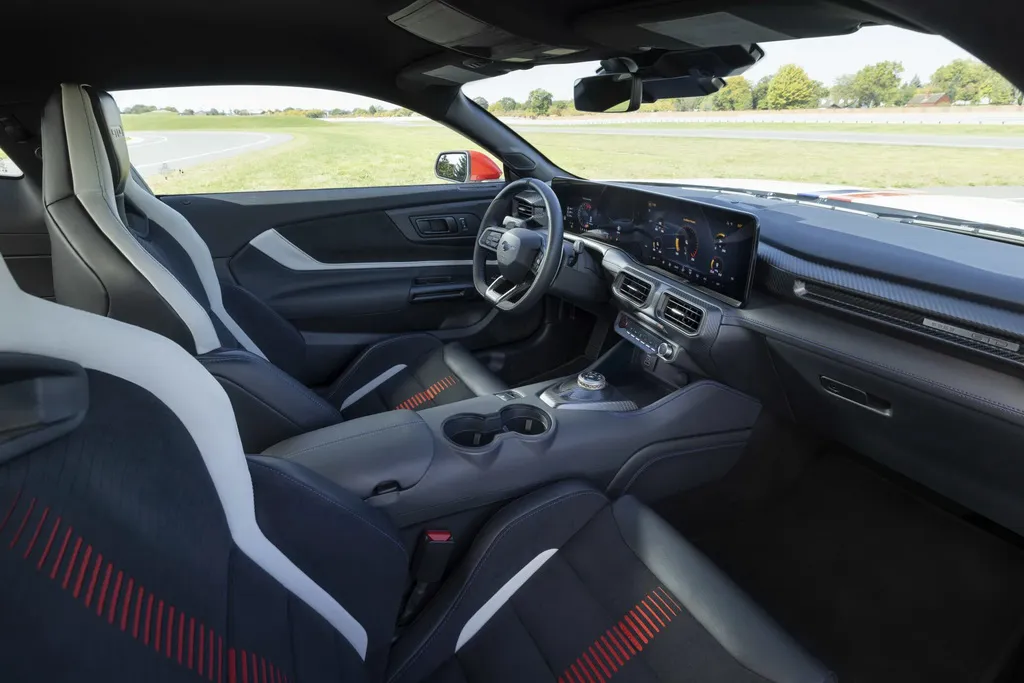 Унікальна ліврея виділяє Spirit of America на тлі і без того ефектного Mustang GTD. Поєднання білого кольору кузова Performance White з червоним Race Red та синім Lightning Blue є відсиланням не тільки до фірмового фону емблеми Mustang, а й до квітів комбінезона, який носив Бридлав. Також у компанії не забули нагадати, що саме GTD став першим американським автомобілем, який пройшов знамениту трасу “Нюрбургрінг” менш ніж за 7 хвилин.