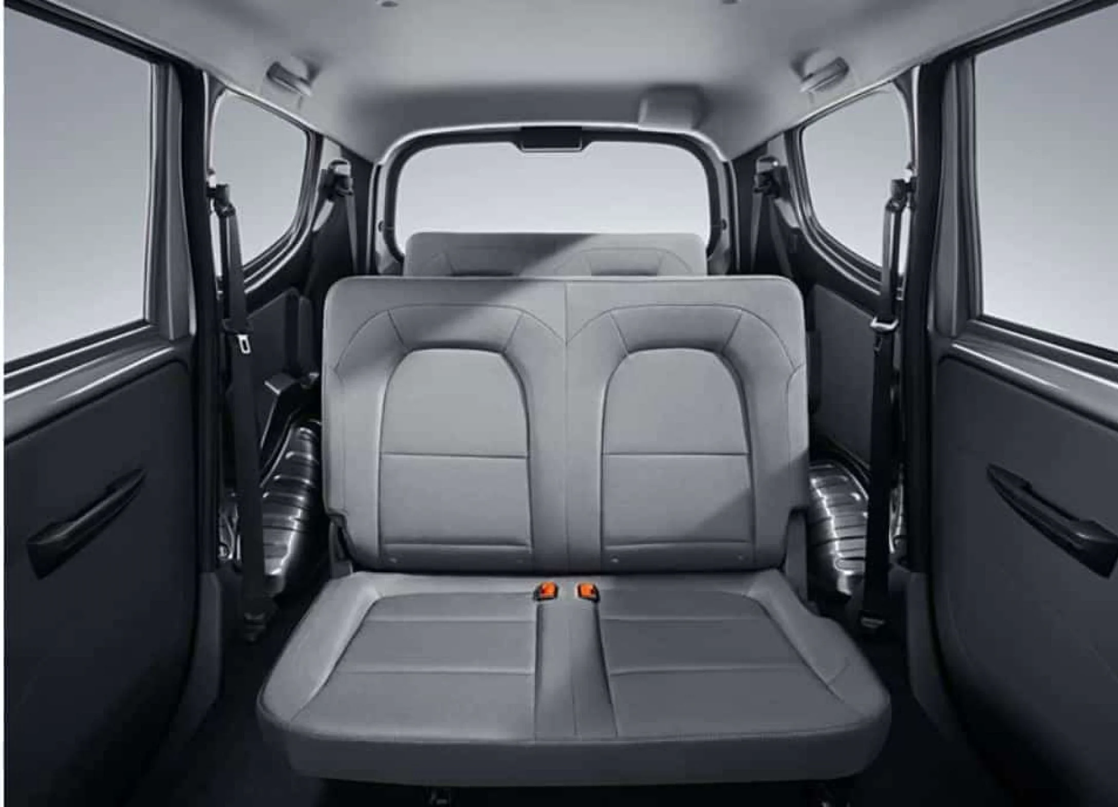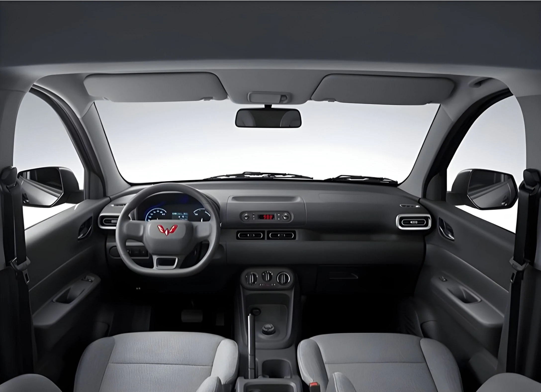 Салон Wuling Hongguang доволі простий — там встановлені аналогові прилади, а за 8-дюймовий тачскрін і подушку безпеки водія треба доплатити. Модель пропонують у варіантах на 5 або 6 місць, а об’єм багажника зі складеними задніми кріслами становить 2800 л.
