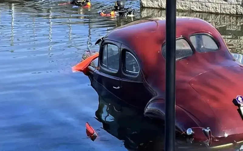 Вінтажний Packard скотився у воду, бо його не поставили на стоянкове гальмо. Автомобіль недавно пройшов тривалу реставрацію.