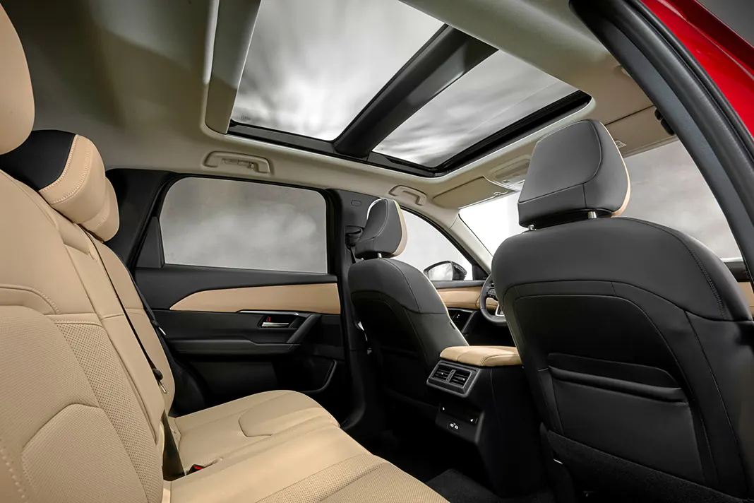 Найдраматичніші зміни у Mazda CX-5 відбулися в салоні. Від фірмового стилю Mazda тут мало що залишилося, адже тепер салон CX-5 нагадує салон китайської Mazda 6e, яку випускає Changan. На передній панелі фактично не залишилося фізичних клавіш, всі кліматичні налаштування переїхали в мультимедійний планшет діагоналлю 12,9 або 15,6 дюйма. Панель приладів тепер також повністю цифрова, 10,25-дюймова.