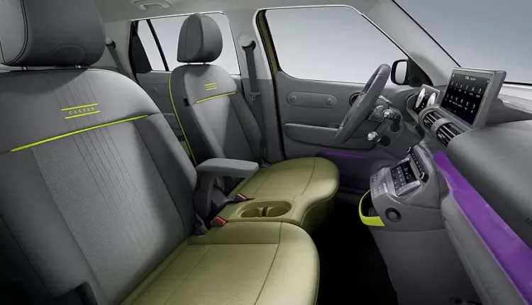 Всередині Hyundai вибрав двоколірну оббивку, поєднавши нижню частину сидінь із зеленим кузовом. Як і звичайний Casper, який також продається як фургон у Кореї, він має багато фізичних кнопок, які доповнюють великий центральний екран.