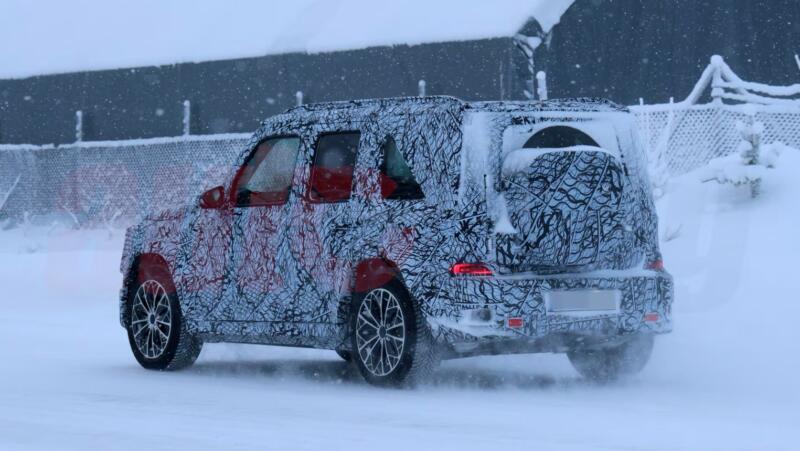 Німці готують зменшену версію моделі, яку в мережі називають mini або baby G-Wagen. Кузов тестового прототипу повністю закритий камуфляжем, але видно фірмову “квадратну” форму з коротким носом, круглими фарами та рубаним силуетом. Корма нагадує старший G-Class, хоча запаска на прототипі виглядає занадто великою. Про це повідомляє UAmotors.