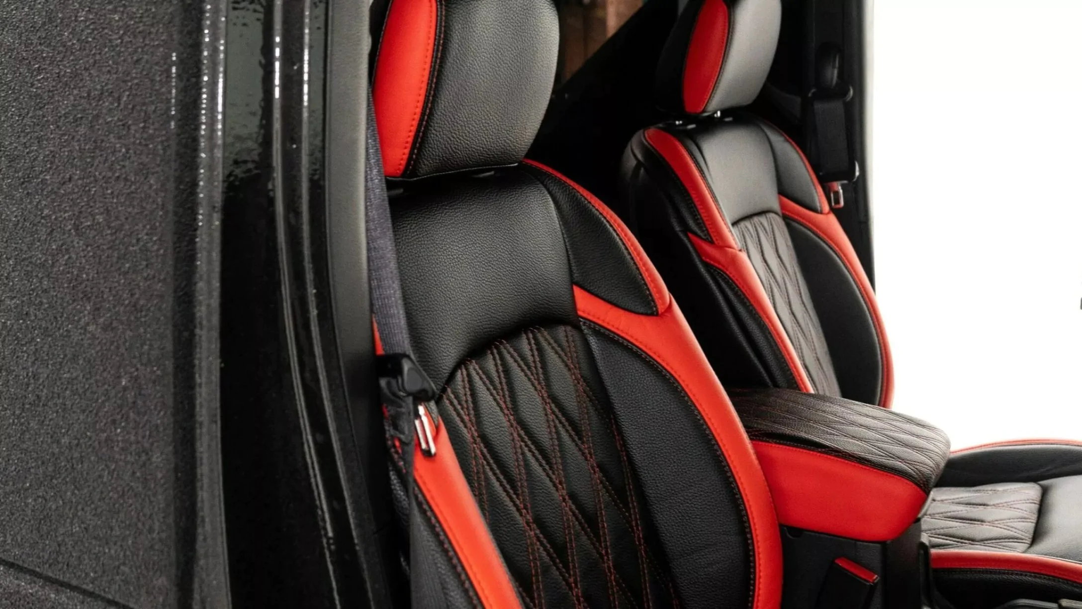 Замість задніх сидінь тепер встановлено 1,5-метрову вантажну платформу. Дах авто знімається, а двері можна замінити дугами. Салон обшили червоно-чорною шкірою, а в якості опцій пропонують потужну аудіосистему і підніжки з електроприводом.