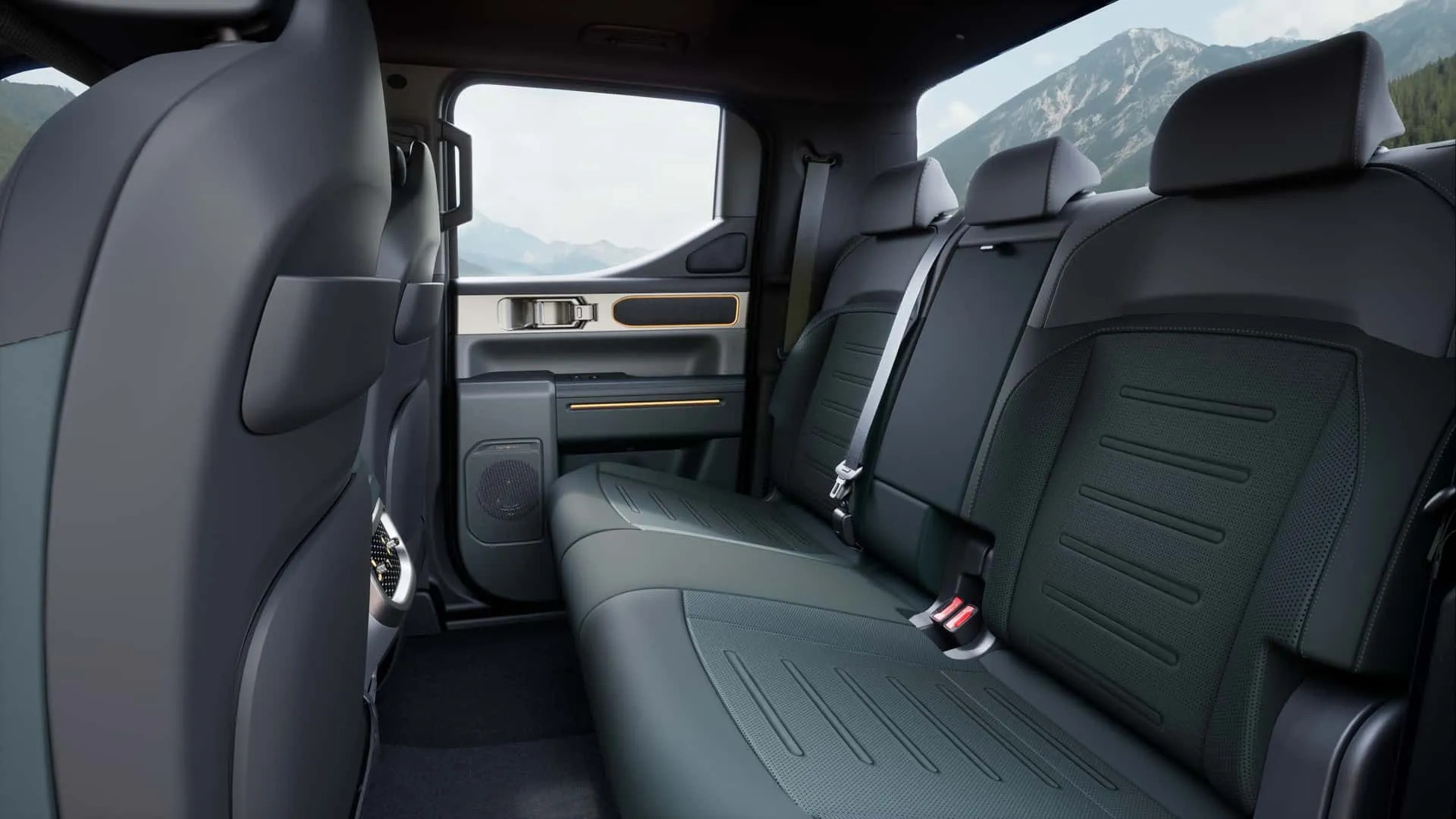 Kia заявляє про найкращий у своєму класі простір для голови, плечей і ніг у другому ряду, а також про можливість відхиляти задні сидіння на 22-30 градусів. Якщо відкинути задні сидіння, під ними можна знайти два приховані відсіки для зберігання тих цінних речей. Крім того, Tasman має два бездротові зарядні майданчики, звукову систему Harman Kardon, складний консольний столик та ручки на передніх стійках.