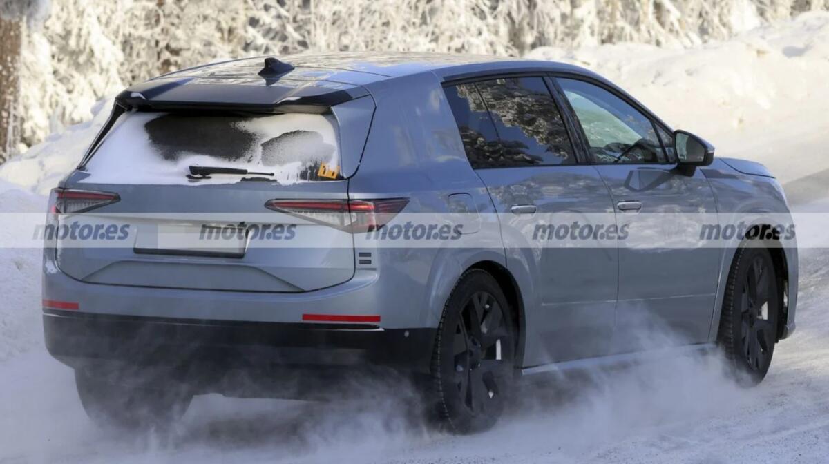 Центральна частина передка прихована, але помітна глянцево-чорна панель із масивною рамкою. Дизайн бампера вирізняється трапецієподібною формою та інтегрованим нижнім повітрозабірником. Значна частина кузова, включно із задньою стійкою, боковим склінням та ліхтарями з Т-подібним світловим малюнком, усе ще замаскована.