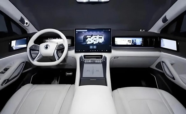 У салоні встановлено трьохекранний блок: 17,3-дюймовий центральний дисплей, два 13,2-дюймових екрани для водія та пасажира, а також 50-дюймовий проекційний AR-HUD. Камери заднього виду транслюють зображення на додаткові екрани, вбудовані у двері. У центральній консолі збережено кілька фізичних кнопок, передбачено два бездротові зарядні пристрої для смартфонів та автомобільний холодильник під підлокітником. Другий ряд обладнано розкладними столиками та окремим холодильником для пасажирів.