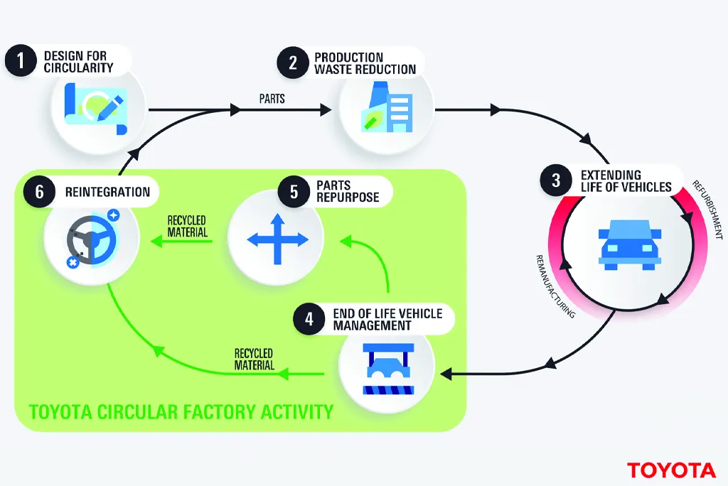 Для Toyota це не просто екологічна ініціатива, а сильний стратегічний хід з впровадження економіки замкнутого циклу. В основі концепції — принцип «трьох R»: Reduce, Reuse, Recycle (скорочуй, використовуй повторно, переробляй).