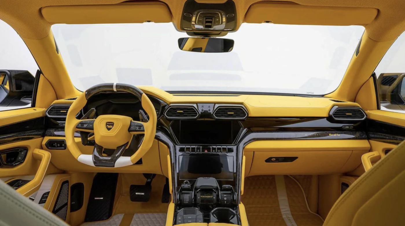 Lamborghini Urus від Mansory Venatus має змінену передню частину, карбонові капоти, обвіс та дифузор. На даху ззаду є спойлер та антикрило. Салон кросовера оздоблено дорогою шкірою та карбоном. До того ж можна обрати яскраві кольори, як на фото жовтий.