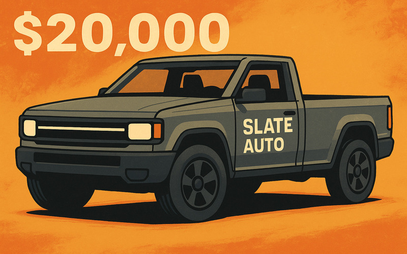 Стартап Slate Auto, нібито підтримуваний Джеффом Безосом, представив незвичайний електропікап за $20 000. Він позбавлений цифрових екранів, має ручні склопідіймачи та пропонує комплекти надбудов у стилі “зроби сам”, що перетворюють авто на позашляховик або кабріолет.