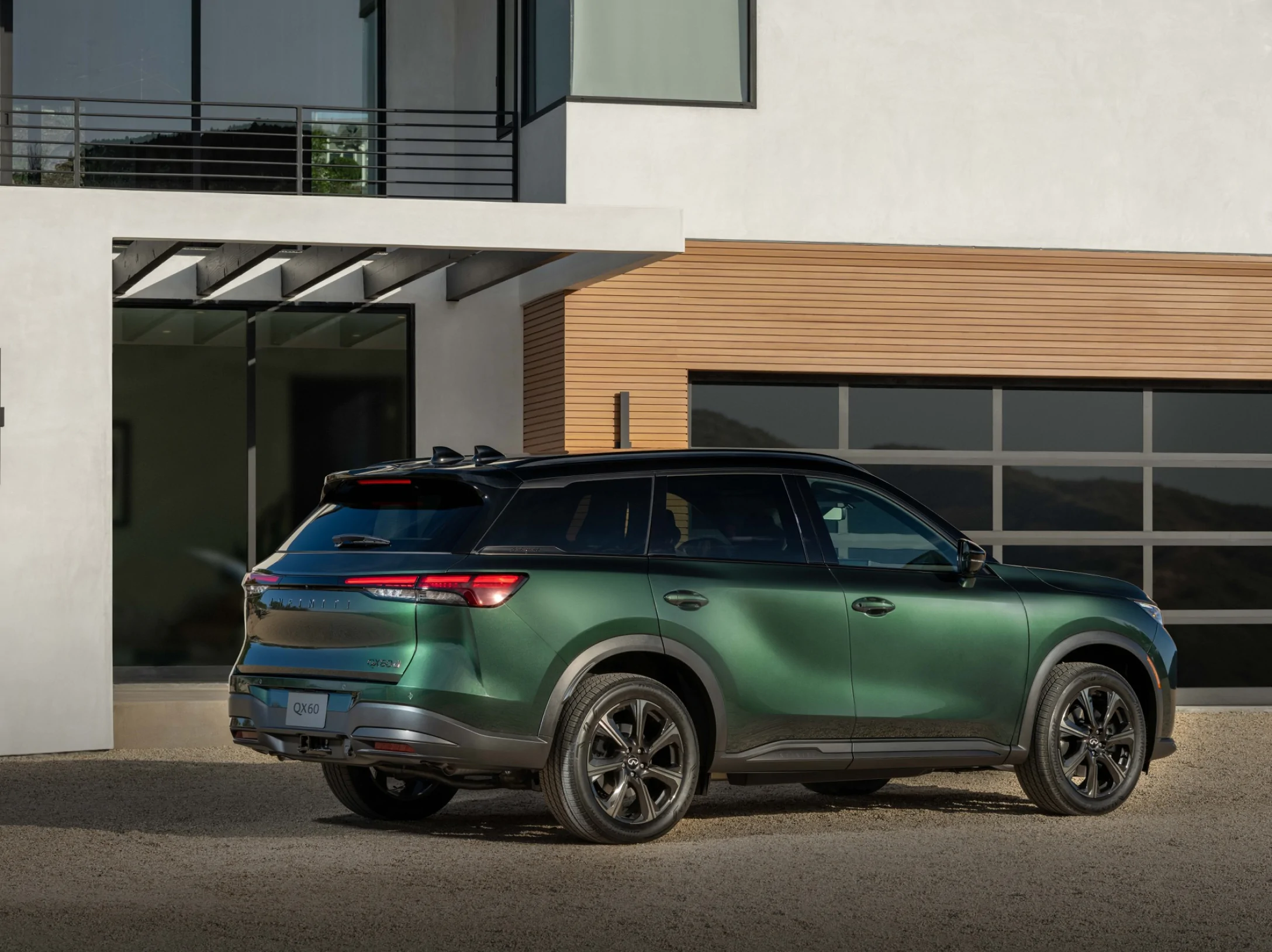 Кросовер Infiniti QX60 пізнається, передусім, за зміненою передньою частиною. Нова решітка радіатора, агресивніший бампер зі збільшеними повітрозбірниками та оновлені фари зробили її виразнішою. Крім того, освіжили накладки на пороги, ліхтарі та задній бампер.