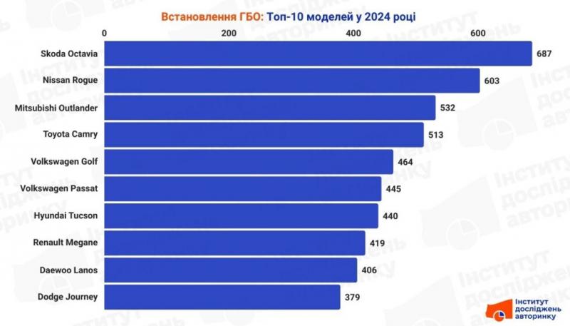 Серед марок автомобілів, які найчастіше переобладнували на газ, лідирує Skoda Octavia старих випусків, з середнім віком 18 років. Nissan Rogue займає друге місце, з середнім віком 8 років. Найбільшу частку серед переобладнаних авто складають кросовери (35%), далі йдуть легкові автомобілі “гольф” класу (23%) та міські автомобілі класу В (20%).