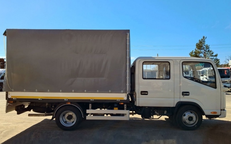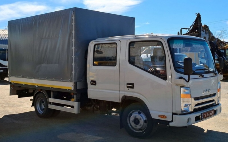 Бортові автомобілі JAC N56DC з дворядною кабіною (5 місць) поставляються з тентом або без, з додатковим встановленням кранів-маніпуляторів за кабіною або кузовом.