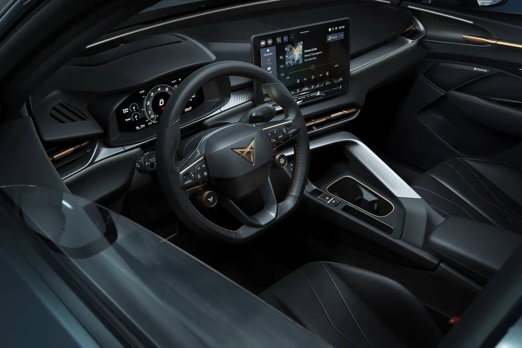 Всередині CUPRA Terramar – концепція “водій у центрі уваги”, цифрова панель Digital Cockpit, спортивне кермо та сидіння. Також увагу привертають мультимедійна система з 12,9-дюймовим дисплеєм і проєкційний Head-up Display.