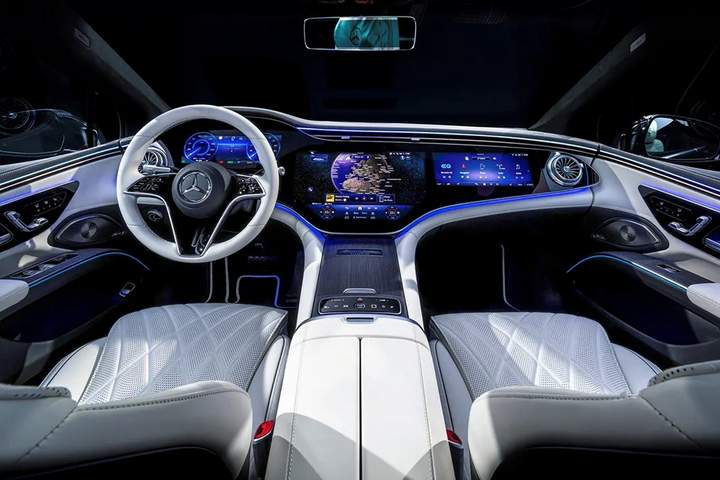 Для салону EQS тепер доступний пакет Rear Comfort Package Plus, що підвищує рівень комфорту у другому ряду. До нього входять висувні підпірки для ніг задніх пасажирів та збільшені діапазони регулювань крісел, щоб пасажири могли зайняти напівлежаче положення. За доплату також пропонуються розширений обігрів сидінь (тепло надходить в район шиї та плечей), регулювання глибини посадки за допомогою пневмокамер та підсвічування спинок передніх крісел. А особливо жадібним до розкоші клієнтам адресовано спеціальне виконання Manufaktur Selection з ексклюзивними кольорами, ексклюзивним дизайном 21-дюймових колісних дисків та ексклюзивним оздобленням салону.