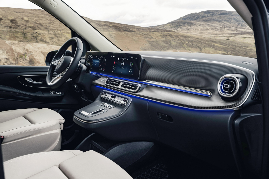 У салоні Mercedes V-Class Marco Polo Edition AMG Line з’явилися чорний декор та вставки “під карбон”. Комплектацію поповнили камери кругового огляду та акустика Jenhert.