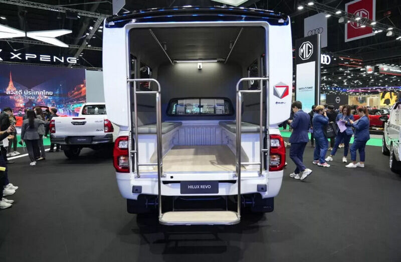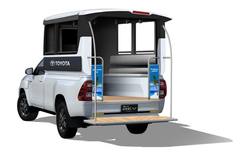 У рамках адаптації до формату сонгтео, нова Toyota Hilux Revo BEV отримала доопрацьований багажник, який перетворили на пасажирську кабіну.