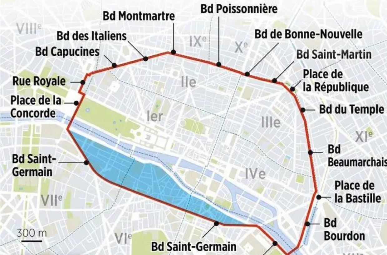 Визначені зони охоплюють загальну площу 5,5 квадратних кілометрів, яка включає такі визначні пам’ятки, як Лувр і сади Тюїльрі.